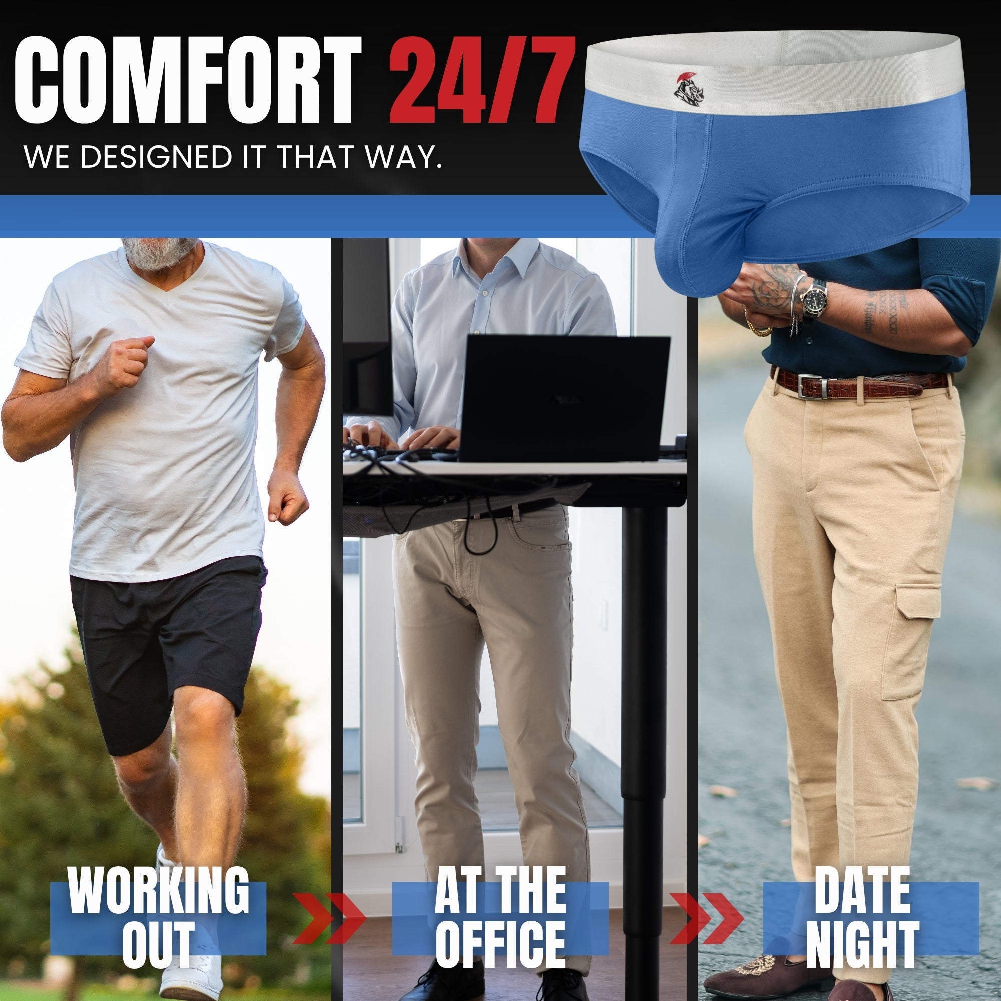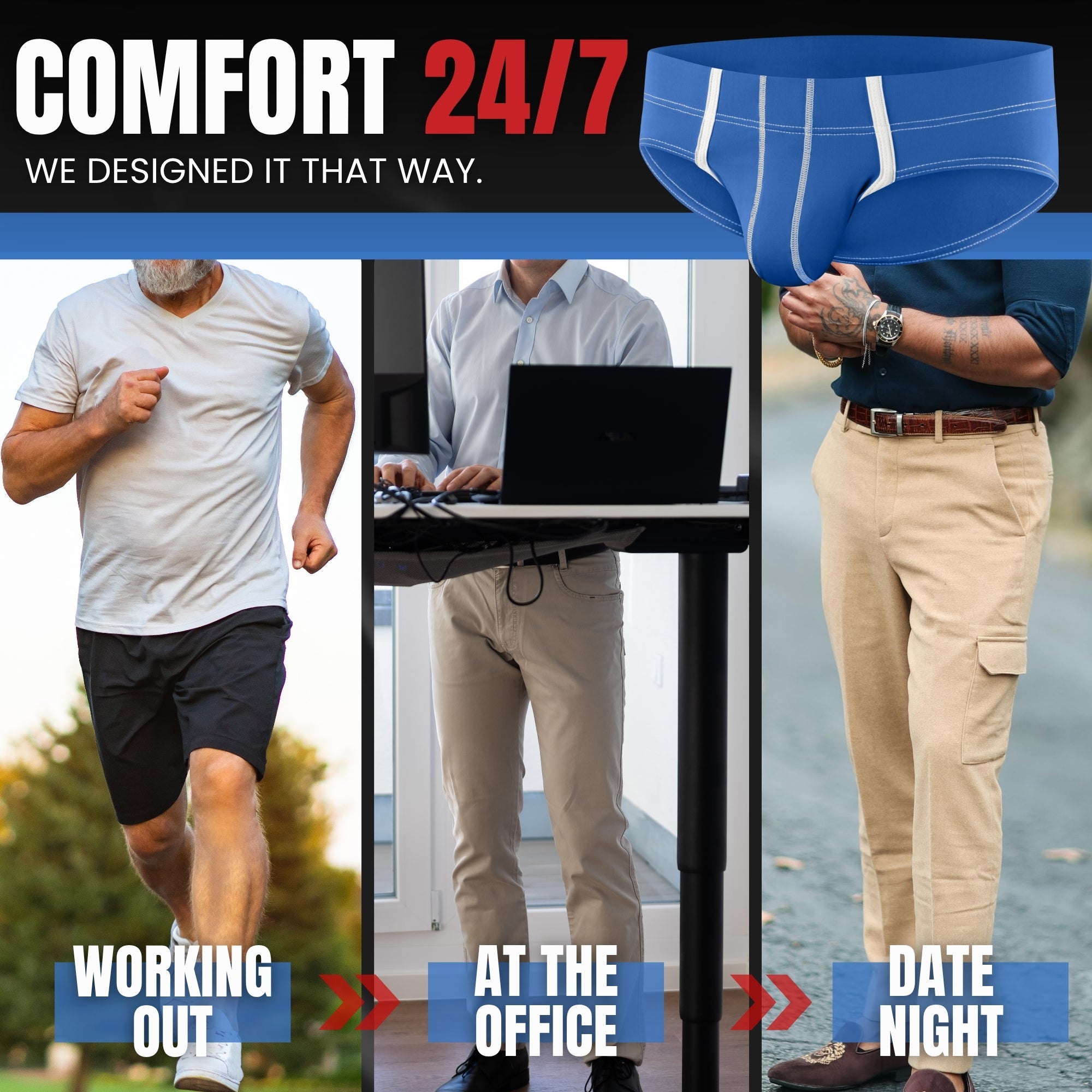 - **Daily Wear:** Choose men’s boxer briefs with ball hammock features to assure all-day comfort and a polished fit.
